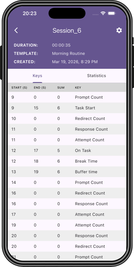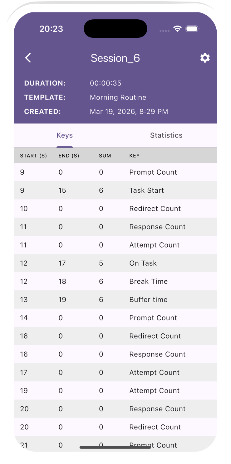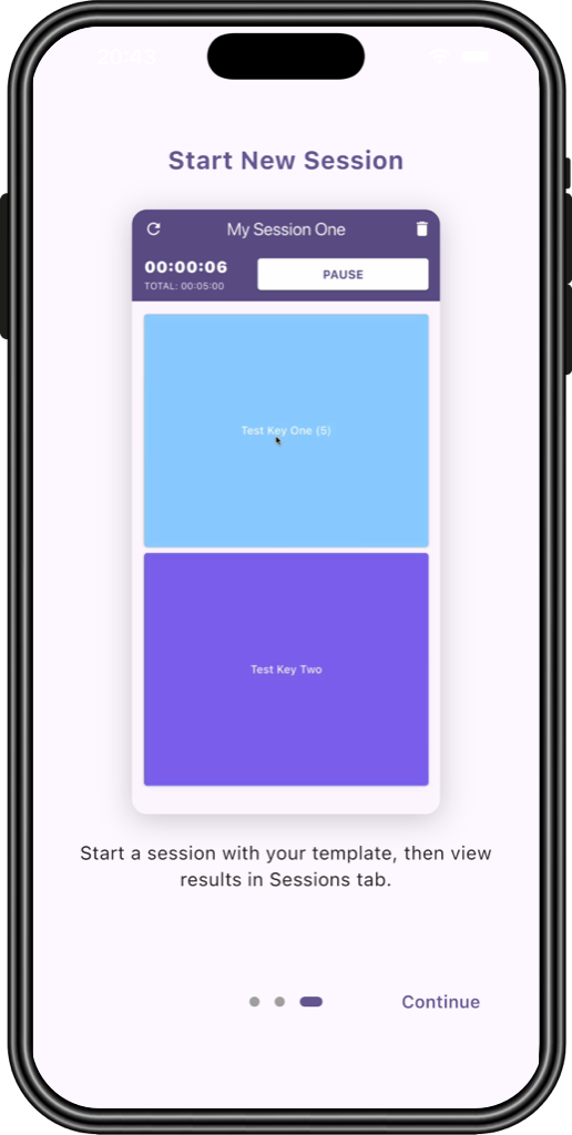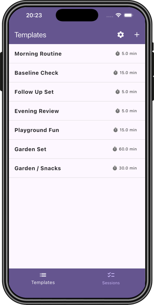 Run sessions for any length — from minutes to hours.